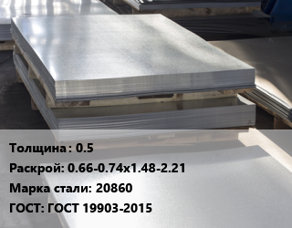 Лист горячекатаный 0.5 0.66-0.74х1.48-2.21 Сталь: 20860 ГОСТ: ГОСТ 19903-2015