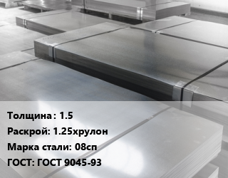 Лист холоднокатаный 1.5 1.25хрулон Сталь: 08сп ГОСТ: ГОСТ 9045-93