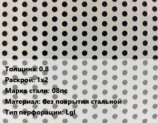 Лист перфорированный 0.8 1х2 Марка: 08пс без покрытия стальной Lgl
