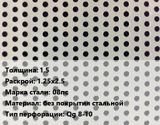 Лист перфорированный 1.5 1.25х2.5 Марка: 08пс без покрытия стальной Qg 8-10