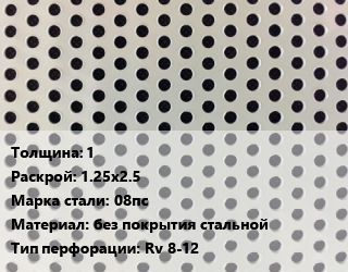 Лист перфорированный 1 1.25х2.5 Марка: 08пс без покрытия стальной Rv 8-12