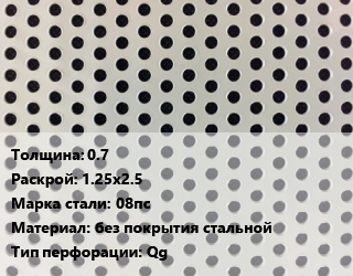 Лист перфорированный 0.7 1.25х2.5 Марка: 08пс без покрытия стальной Qg