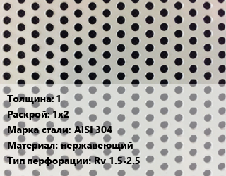 Лист перфорированный 1 1х2 Марка: AISI 304 нержавеющий Rv 1.5-2.5