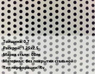 Лист перфорированный 0.7 1.25х2.5 Марка: 08пс без покрытия стальной Rv