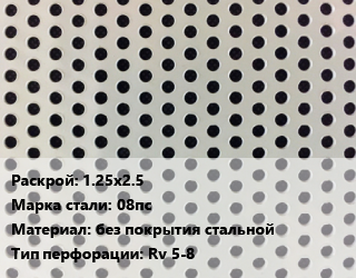 Лист перфорированный 1.25х2.5 Марка: 08пс без покрытия стальной Rv 5-8