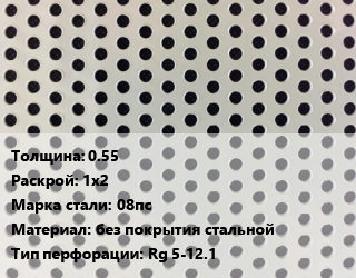 Лист перфорированный 0.55 1х2 Марка: 08пс без покрытия стальной Rg 5-12.1