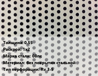 Лист перфорированный 0.55 1х2 Марка: 08пс без покрытия стальной Rv 3-5