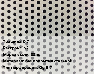 Лист перфорированный 0.7 1х2 Марка: 08пс без покрытия стальной Qg 5-7