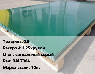 Лист с полимерным покрытием 0.5 1.25хрулон сигнальный серый RAL7004 Сталь: 10пс