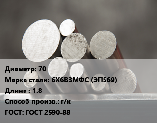 Круг стальной 70 Сталь: 6Х6В3МФС (ЭП569) L=1.8 г/к ГОСТ: ГОСТ 2590-88