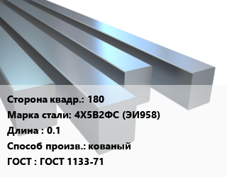 Квадрат стальной 180 Сталь: 4Х5В2ФС (ЭИ958) L=0.1 кованый ГОСТ 1133-71