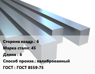 Квадрат стальной 6 Сталь: 45 L=6 калиброванный ГОСТ 8559-75