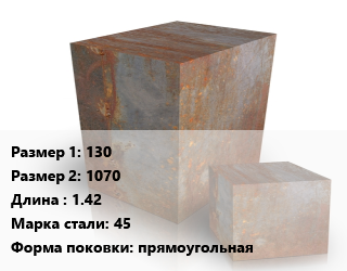 Поковка квадратная 130х1070 L=1.42 Сталь: 45 прямоугольная