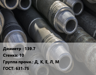 Труба бурильная 139.7 s=10 Д, К, Е, Л, М ГОСТ: 631-75