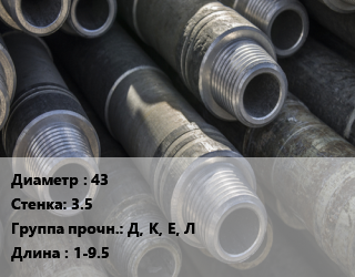 Труба бурильная 43 s=3.5 Д, К, Е, Л L=1-9.5