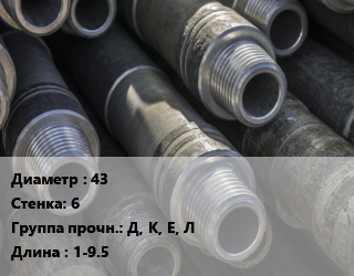 Труба бурильная 43 s=6 Д, К, Е, Л L=1-9.5
