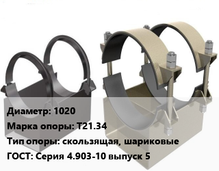 Опора трубопровода 1020 Т21.34 скользящая, шариковые ГОСТ: Серия 4.903-10 выпуск 5