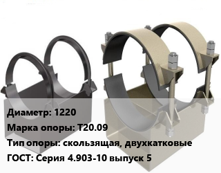 Опора трубопровода 1220 Т20.09 скользящая, двухкатковые ГОСТ: Серия 4.903-10 выпуск 5