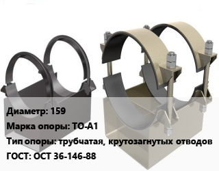 Опора трубопровода 159 ТО-А1 трубчатая, крутозагнутых отводов ГОСТ: ОСТ 36-146-88
