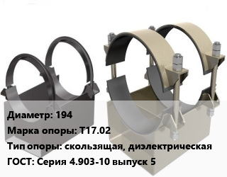 Опора трубопровода 194 Т17.02 скользящая, диэлектрическая ГОСТ: Серия 4.903-10 выпуск 5