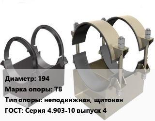 Опора трубопровода 194 Т8 неподвижная, щитовая ГОСТ: Серия 4.903-10 выпуск 4