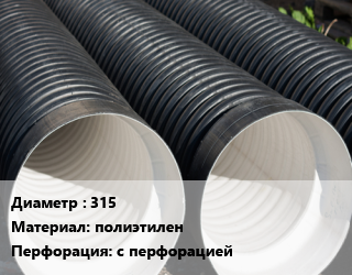 Труба дренажная 315 полиэтилен с перфорацией, м, гофрированная цена от 946.8 сом / м, где купить, условия доставки в Бишкеке и Чуйской области