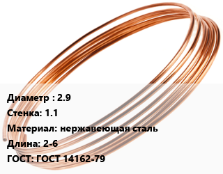 Труба капиллярная 2.9 s=1.1 нержавеющая сталь L=2-6 ГОСТ: ГОСТ 14162-79