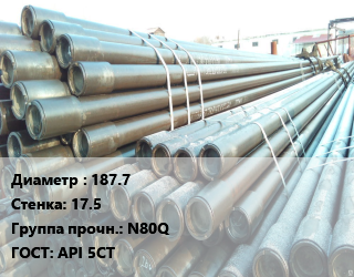 Труба НКТ насоснокомпрессорная 187.7 s=17.5 N80Q ГОСТ: API 5CT