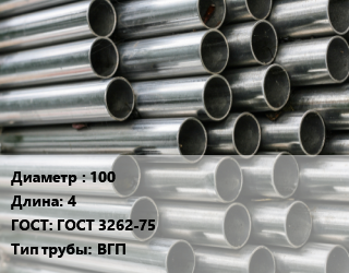 Труба оцинкованная 100 L=4 ГОСТ: ГОСТ 3262-75 ВГП