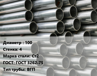 Труба оцинкованная 100 s=4 Сталь: Ст2 ГОСТ: ГОСТ 3262-75 ВГП