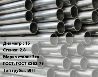 Труба оцинкованная 15 s=2.8 Сталь: 3сп ГОСТ: ГОСТ 3262-75 ВГП