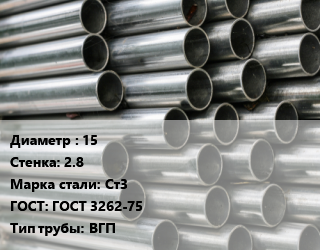 Труба оцинкованная 15 s=2.8 Сталь: Ст3 ГОСТ: ГОСТ 3262-75 ВГП