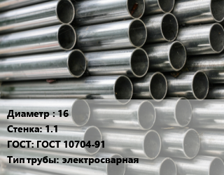 Труба оцинкованная 16 s=1.1 ГОСТ: ГОСТ 10704-91 электросварная
