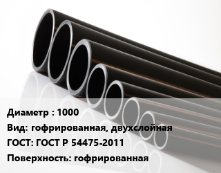 Труба полиэтиленовая 1000 гофрированная, двухслойная ГОСТ: ГОСТ Р 54475-2011 гофрированная