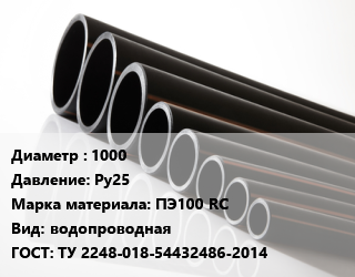 Труба полиэтиленовая 1000 Ру25 ПЭ100 RC водопроводная ГОСТ: ТУ 2248-018-54432486-2014