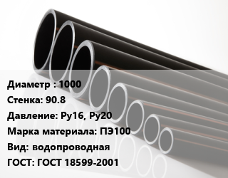 Труба полиэтиленовая 1000х90.8 Ру16, Ру20 ПЭ100 водопроводная ГОСТ: ГОСТ 18599-2001