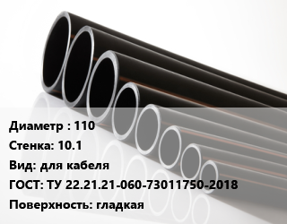 Труба полиэтиленовая 110х10.1 для кабеля ГОСТ: ТУ 22.21.21-060-73011750-2018 гладкая