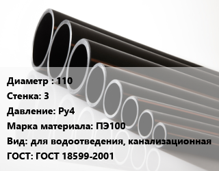 Труба полиэтиленовая 110х3 Ру4 ПЭ100 для водоотведения, канализационная ГОСТ: ГОСТ 18599-2001
