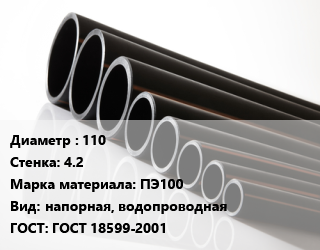 Труба полиэтиленовая 110х4.2 ПЭ100 напорная, водопроводная ГОСТ: ГОСТ 18599-2001