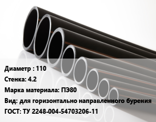 Труба полиэтиленовая 110х4.2 ПЭ80 для горизонтально направленного бурения ГОСТ: ТУ 2248-004-54703206-11