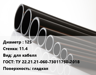 Труба полиэтиленовая 125х11.4 для кабеля ГОСТ: ТУ 22.21.21-060-73011750-2018 гладкая