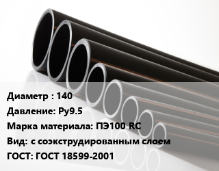 Труба полиэтиленовая 140 Ру9.5 ПЭ100 RC с соэкструдированным слоем ГОСТ: ГОСТ 18599-2001