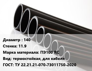 Труба полиэтиленовая 140х11.9 ПЭ100 RC термостойкая, для кабеля ГОСТ: ТУ 22.21.21-070-73011750-2020