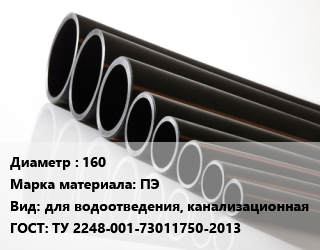 Труба полиэтиленовая 160 ПЭ для водоотведения, канализационная ГОСТ: ТУ 2248-001-73011750-2013