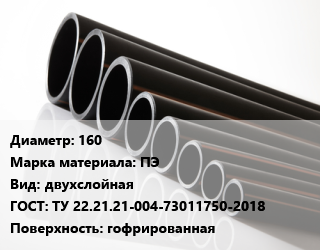 Труба полиэтиленовая 160 ПЭ двухслойная ГОСТ: ТУ 22.21.21-004-73011750-2018 гофрированная