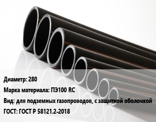 Труба полиэтиленовая 280 ПЭ100 RC для подземных газопроводов, с защитной оболочкой ГОСТ: ГОСТ Р 58121.2-2018