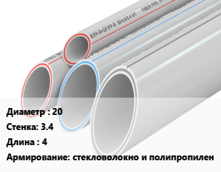 Труба полипропиленовая 20 s=3.4 L=4 стекловолокно и полипропилен
