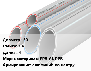 Труба полипропиленовая 20 s=3.4 L=4 PPR-AL-PPR алюминий по центру