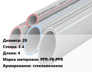 Труба полипропиленовая 20 s=3.4 L=4 PPR-FB-PPR стекловолокно