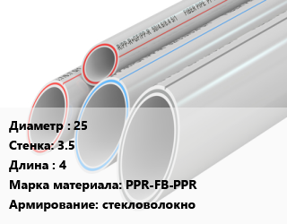Труба полипропиленовая 25 s=3.5 L=4 PPR-FB-PPR стекловолокно